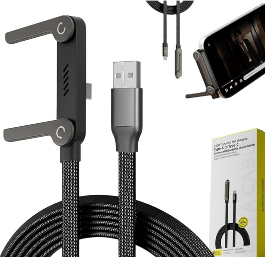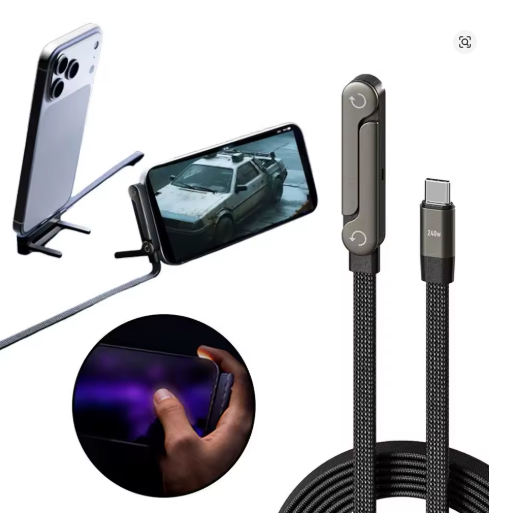câble 2-en-1 avec Charge 65W et Support Mobile Invisible.